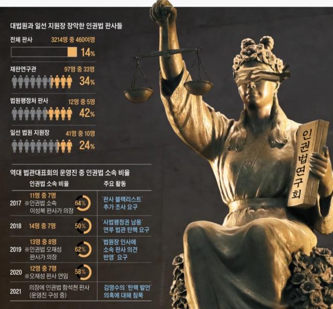 재판연구관 판사 34%, 법원행정처 판사 42% ‘인권법연구회’ 출신