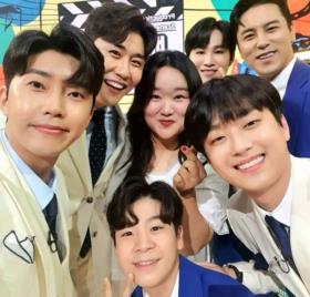 배우 하재숙 TV조선 녹화 현장에서 '미스터트롯' 톱6와 찍은 단체 사진 공개