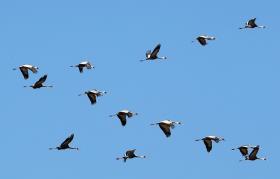 지난 21일 오전 경남 창원시 의창구 주남저수지에서 세계적 희귀종인 재두루미가 날개짓하고 있다. 재두루...