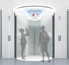 한국 금상작 ‘갓플(Gather and Play)’, 엘리베이터 천장의 유선형 디스플레이와 탑승객의 스마트폰...