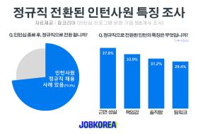 잡코리아 조사... 기업 10곳 중 7곳, 성실하고 책임감 있는 인턴사원 정규직 채용