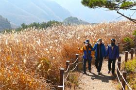 지난 17일 바람에 흩날리는 억새가 사자 갈기를 닮아 사자평이라 불리는 경남 밀양시 재약산 능...