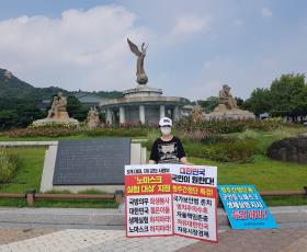 '청주간첩단 특검 촉구' '군인 대상 노마스크 실험 반대'... 제2연평해전 유족·군권익보호센터 대표, 청와대 앞 1인 시위