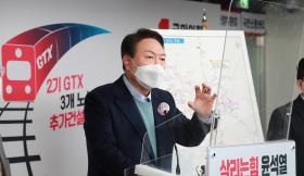 윤석열 "지옥철 출근길 만만치 않아... GTX 빠르게 완공해 '30분 내 통행권' 만들겠다!"