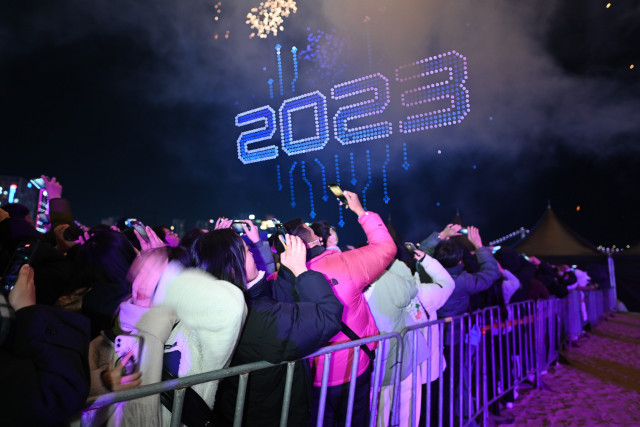 새해 첫 밤하늘 밝힌 1500대 드론 라이트쇼... 국내 최대 규모 드론 라이트쇼
