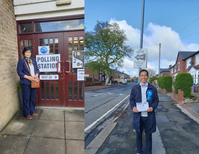 지난 6일(현지 시각) 실시된 영국 지방선거에서 박지현 씨와 티머시 조 씨가 그레이터맨체스터주 구의원 선거 보수당 후보로 나섰다.