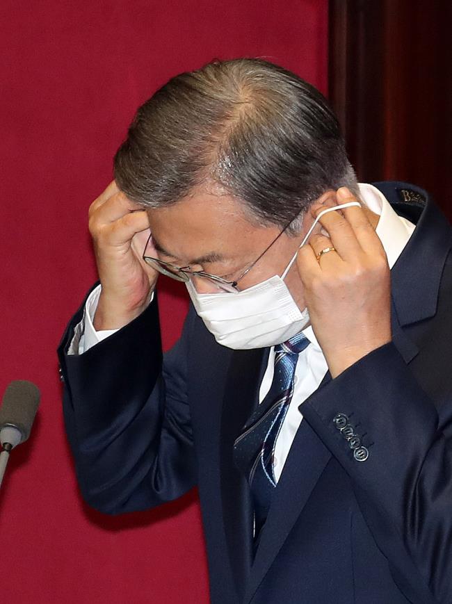 한국갤럽이 지난 11~12일 매일경제·MBN 의뢰로 진행한 여론조사에서 ‘문 대통령이 취임 이후 지금까지 가장 잘한 일은 무엇이라고 생각하십니까’라는 질문에 ‘특별히 잘한 일이 없다’는 답변이 34.8%로 1위였다. 2위는 ‘모름·응답 거절’(25.8%)이었다. ‘코로나 19 대처’ ‘남북관계 개선’을 잘한 일로 꼽은 응답도 있었지만 각기 13.7%, 4.8%에 그쳤다.