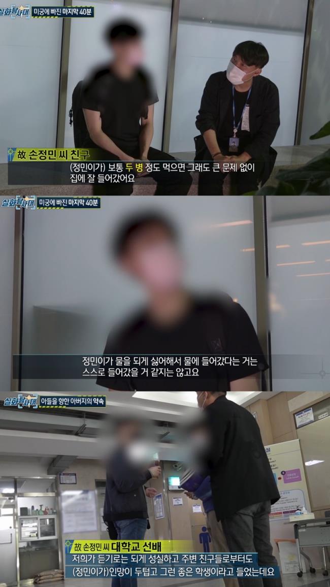 해당 프로그램 취재진은 손군이 생전 재학한 대학교에 가서 수소문하기도 했다. 손군의 한 대학교 선배는 “저희가 듣기로는 (정민이가) 되게 성실하고 주변 친구들로부터도 인망이 두텁고 그런 좋은 학생이라고 들었다”고 말했다.