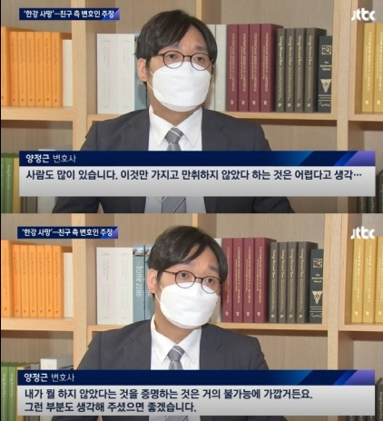 '목격자를 매수했다'는 루머에는 "말도 안 된다"고 받아쳤다. 양 변호사는 "저희는 목격자가 어떤 분인지도 모른다. 수사기관에서만 알고 있는 것"이라며 "내가 뭘 하지 않았다는 것을 증명하는 것은 거의 불가능에 가깝다. 그런 부분도 생각해 주셨으면 좋겠다"고 밝혔다.