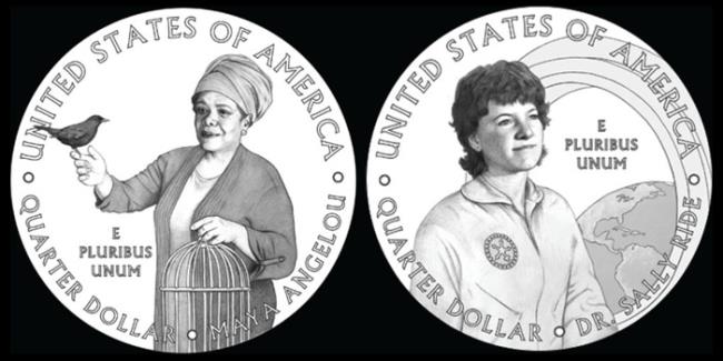 미국에서 가장 많이 쓰이는 25센트 동전에 처음으로 여성 위인(偉人)의 얼굴이 새겨진다. 시인이자 인권 운동가 마야 앤젤루(Maya Angelou·1928~2014)와 미국 최초의 여성 우주 비행사 샐리 라이드(Sally Ride·1951~2012)가 그 주인공이다.
