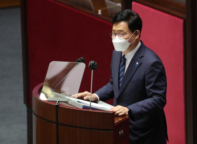 송영길 더불어민주당 대표가 16일 서울 여의도 국회 본회의에서 열린 교섭단체 대표 연설에서 ‘청년특임장관(靑年特任長官)’ 신설을 제안했다.