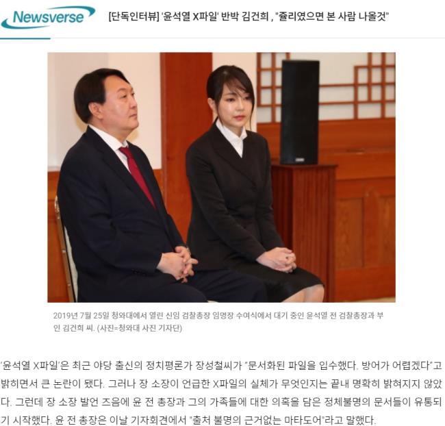 대권 출마를 선언한 윤석열 전 검찰총장의 부인 김건희씨가 소위 ‘윤석열 X파일’로 불리는 괴(怪)문건에 나온 본인에 대한 각종 의혹에 극력(極力) 반박했다.