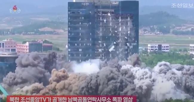▲ 북한은 작년 6월 일방적으로 남북 연락선을 끊고 남북연락사무소를 무단 폭파했다. 사진=조선일보 유튜브 캡처