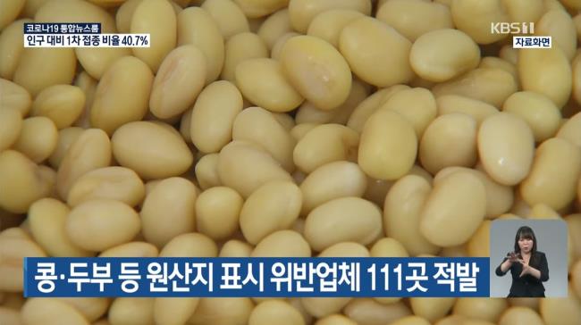 이렇듯 콩 원산지를 속이거나 숨겨 콩국수, 두부 등을 제조해 판매한 111개 위반 업체가 적발됐다.