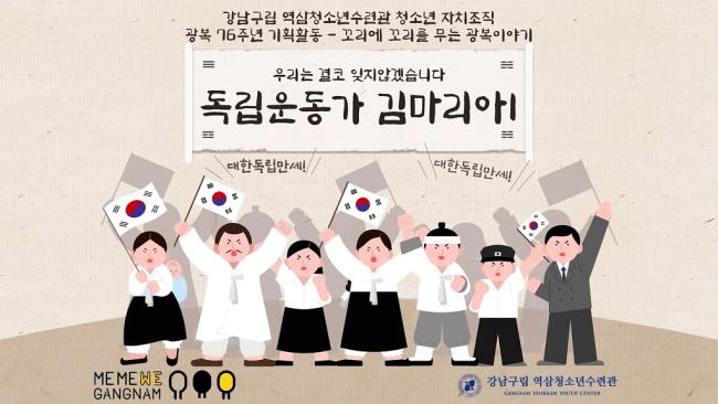13일 서울 강남 역삼청소년수련관 소속 청소년 자치조직 단원들이 제76주년 광복절을 맞이해 비대면 청소년활동 '꼬리에 꼬리를 무는 광복이야기’를 기획했다고 밝혔다.