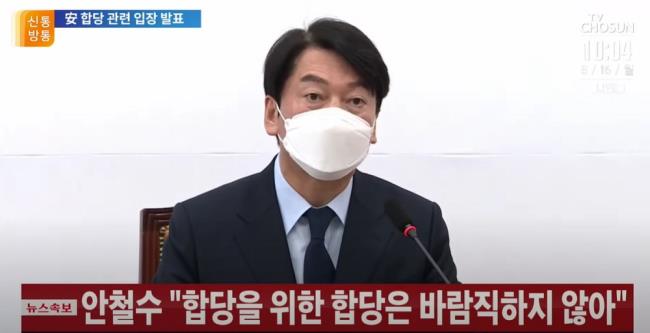 안철수 국민의당 대표가 16일 국민의힘과의 합당(合黨) 결렬을 공식 선언했다.