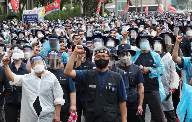 25일 《조선일보》 보도에 따르면 민노총 금속노조 현대제철 비정규직 지회는 25일 오후 3시 충남 당진시 송악읍 현대제철 당진제철소에서 협력업체 직원 직고용을 요구하는 집회를 벌였다. 이들은 통제센터 건물 인근 왕복 6차로 도로 150m 구간을 점거하고 "자회사는 필요 없다. 현대제철에서 직고용하라"고 요구하며 1시간여 집회를 이어 갔다. 노조원들은 마스크와 페이스실드를 착용했지만, 팔을 뻗으면 닿을 거리에 서 있어 1m 거리 두기가 제대로 지켜지지 않는 경우도 많았다. 앞서 지난 23일 통제센터를 기습 점거한 노조원 100여명은 건물 안에서 나흘째 농성을 이어갔다.