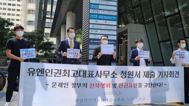 이 단체들은 유엔인권최고대표사무소와 유엔인권서울사무소를 향해 "유엔 안보리의 대북제재를 우회하고 무력화하는 문재인 정부의 친북행위에 주목해 주시고 이에 우려를 표명해 주시기 바란다"고 요청했다.
