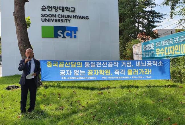 시민단체 공자학원실체알리기운동본부(이하 공실본)는 13일 충남 아산 순천향대 앞에서 기자회견을 열고 공자학원 추방 촉구 전국 순회 기자회견을 열 계획이라고 밝혔다.