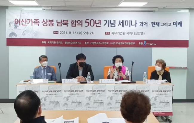 북한인권단체 물망초는 15일 오후 서울 여의도 자유기업원에서 남북적십자회담 50주년을 기념해 '이산가족 남북 합의 50년: 과거 현재 그리고 미래' 세미나를 열었다. 참석자들은 현 정부가 정치적 목적으로 이산가족 문제를 외면하고 있다고 지적했다.