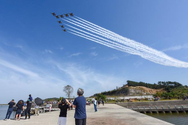 대한민국 공군 특수비행팀 '블랙이글스'(Black Eagles)는 지난 3일 전북 김제 지평선축제에서 진행된 에어쇼 장면을 12일 공개했다.