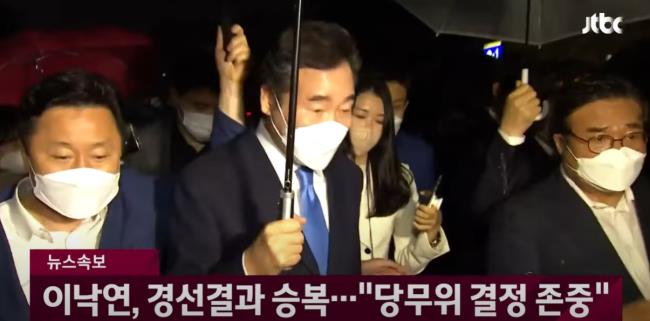 이 전 대표는 이날 발표한 입장문에서 “대통령 후보 사퇴자 득표의 처리 문제는 과제를 남겼지만, 그에 대한 당무위원회 결정은 존중한다. 저는 대통령 후보 경선 결과를 수용한다”며 “경선에서 승리하신 이재명 후보께 축하드린다. 이 후보께서 당의 단합과 대선 승리를 위해 최선을 다해 주시리라 믿는다”고 밝혔다.