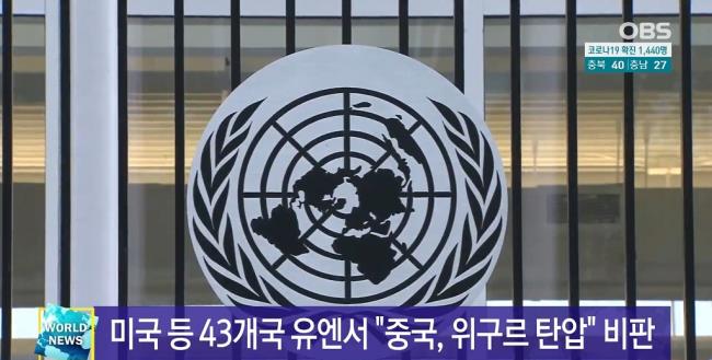 유엔 회원국 43국이 중국 정부의 신장 위구르 인권 탄압을 비판하는 공동성명을 발표했다. 한국 정부는 성명 발표에 3년 연속 참여하지 않은 것으로 나타났다.