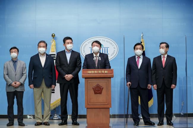 국민의힘 대선주자 윤석열 전 검찰총장 대선캠프에 야권 거물(巨物) 정치인이 모여들고 있다. 윤 전 총장 ‘국민캠프’는 24일 공동선대위원장으로 같은 당 김태호·박진 의원, 심재철 전 국회부의장, 유정복 전 인천시장을 영입했다. 김태호 의원과 박진 의원은 대선 경선 초기 윤 전 총장과 자웅을 겨뤘던 당의 대표적 잠룡(潛龍)이다. 심재철 전 국회부의장은 5선(選) 중진이며 유 전 시장 역시 광역단체장과 MB·박근혜 정부에서 장관을 지낸 유력 정치인으로 꼽힌다.