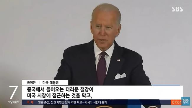 바이든 대통령은 이 자리에서 "중국과 같은 국가의 더러운 철강의 시장에 대한 접근을 제한하고, 우리 시장에 철강을 덤핑해 우리 노동자들과 산업, 그리고 우리 환경에 해를 준 국가들에 대항할 것"이라고 말했다.