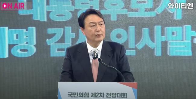 윤석열 전 검찰총장이 국민의힘 대선후보로 최종 선출됐다. 5일 서울 용산구 백범김구기념관에서 열린 국민의힘 제2차 전당대회에서 윤 전 총장이 대선 경선 1위(47.85%)를 기록, 최종 후보에 올랐다. 이하 후보 수락 연설문 전문(全文).