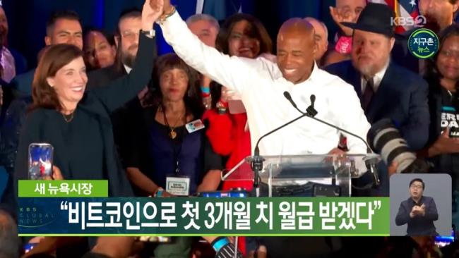 에릭 애덤스 미국 뉴욕시장 당선인이 "시장이 되면 첫 3개월 급여를 비트코인으로 받겠다"고 밝혔다.