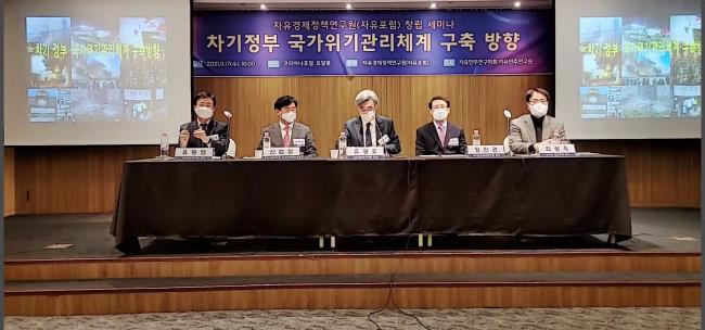 지난 17일 서울 중구 코리아나호텔에서 개최된 자유경제정책연구원 창립 세미나에서 차기 정부의 국가위기관리체계 확립을 촉구하는 목소리가 나왔다.