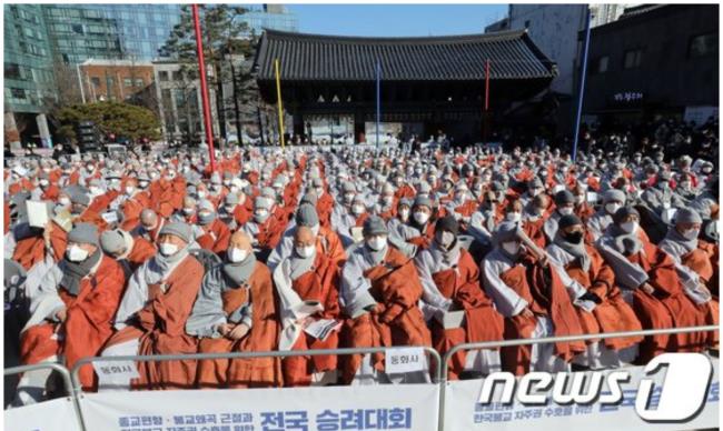 조계종은 이날 "정부 여당의 종교 편향과 전통 불교 문화에 대한 몰이해가 불러온 작금의 상황에 더 이상 침묵할 수 없다"며 "한국 불교의 존엄성이 짓밟히고 왜곡되는 상황을 방치해서는 안 된다"고 주장했다.