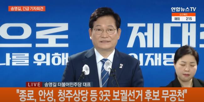 박 수석대변인은 “오늘 송영길 당 대표는 차기 총선 불출마를 선언했다. 민주화에 헌신해 온 586세대가 그토록 염원했던 ‘더 나은 세상’을 위한 단단한 디딤돌이 될 것”이라며 “동일 지역구 국회의원 연속 3선 초과 금지 조항의 제도화 추진도 약속드렸다. 종로·안성·청주 상당구 3곳의 보궐선거에 공천을 하지 않음으로써 ‘원칙을 지키는 책임정치’를 실천하겠다”고 밝혔다.