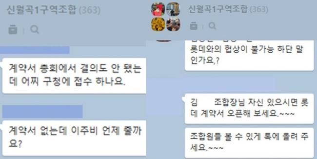 복수의 조합원들은 “현재까지 우리 조합에 확정된 설계도면이 없어 공사도급금액을 산출할 수 없고, 롯데건설 사업단과의 공사계약서도 없을 것”이라면서 “2개월 전 성북구청에 관리처분계획서를 제출했음에도 시공사 계약서를 제출하지 못하고 있다. 관리처분인가가 나올 수 없을 것”이라고 말했다.
