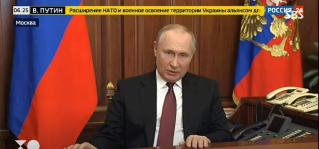 블라디미르 푸틴 러시아 대통령이 우크라이나 전역에 대한 침공을 개시했다. 사실상 양국 간 전쟁이 발발한 것.