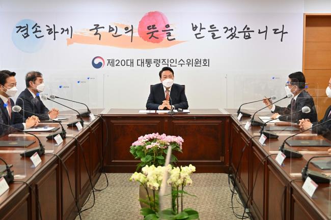 윤 당선인은 전날 박범계 법무장관이 새 정부의 사법 공약에 공개 반대한 것과 관련해서는 “장관 간담회를 쳐다볼 시간이 없었다”며 “뭐라고 했나, 대검과 입장이 다르단 이야기만 들었다”고 말했다. 그는 “(검찰의) 수사지휘권 폐지에 앞서 검찰 수사의 공정성과 중립성 담보가 선행돼야 한다”며 “(새 정부의 사법 개혁을 반대한다는 것은) 이 정부에서 검찰 개혁이라는 것이 검찰 중립성을 지키기 위해 한 것인데 5년간 해놓고 그게 안 됐다는 자평인가”라고 꼬집었다.