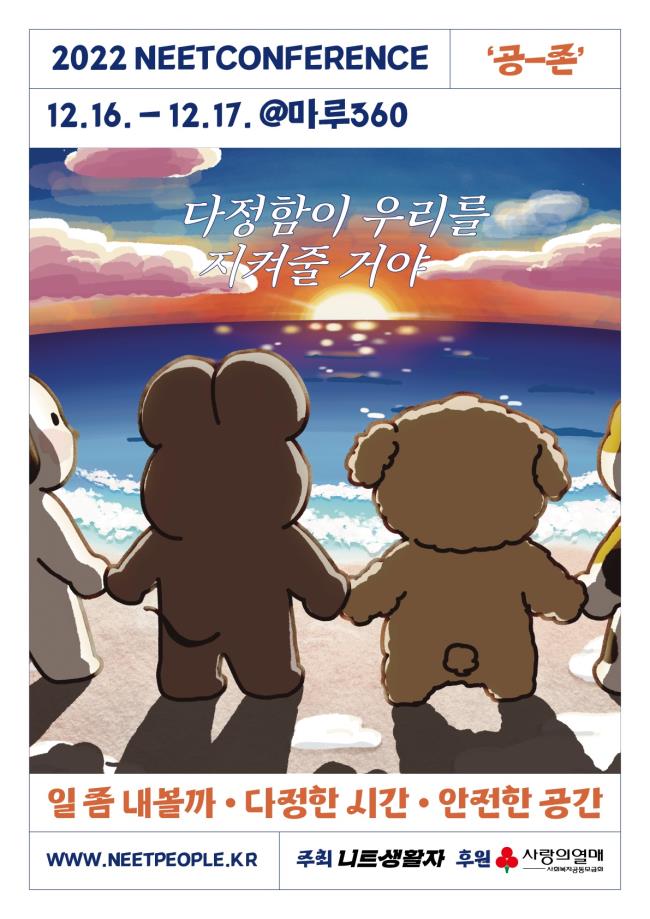 사단법인 니트생활자가 3년 만에 컨퍼런스를 연다. 해당 단체는 한 해 동안 만나왔던 청년 니트 참여자들과 함께하는 ‘장’을 마련했다. 컨퍼런스 주제는 ‘공존’이다. 이 단체는 무업 기간의 고립감이나 무기력함을 사회적 연대로 해소하고, 활력 있는 전환 기간이 되도록 안전지대를 만드는 것을 목표로 한다.
