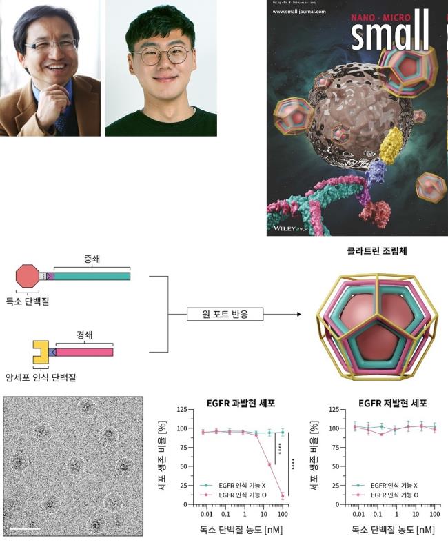 이번 연구에서는 대표적인 종양 표지자인 상피세포성장인자수용체(EGFR)를 인식하는 단백질을 사용해, 암세포에 특이적으로 약물을 전달할 수 있었다. EGFR을 인식하는 단백질로 기능화된 클라트린 조립체는 결합증대 효과로 인해, 기존보다 무려 900배 이상 향상된 결합력을 보였다. 연구팀은 이를 기반으로, 독소 단백질을 연결한 클라트린 조립체를 세포에 처리했을 때, 정상 세포에는 영향이 없으나 암세포만 효과적으로 사멸시킨다는 것을 확인했다.