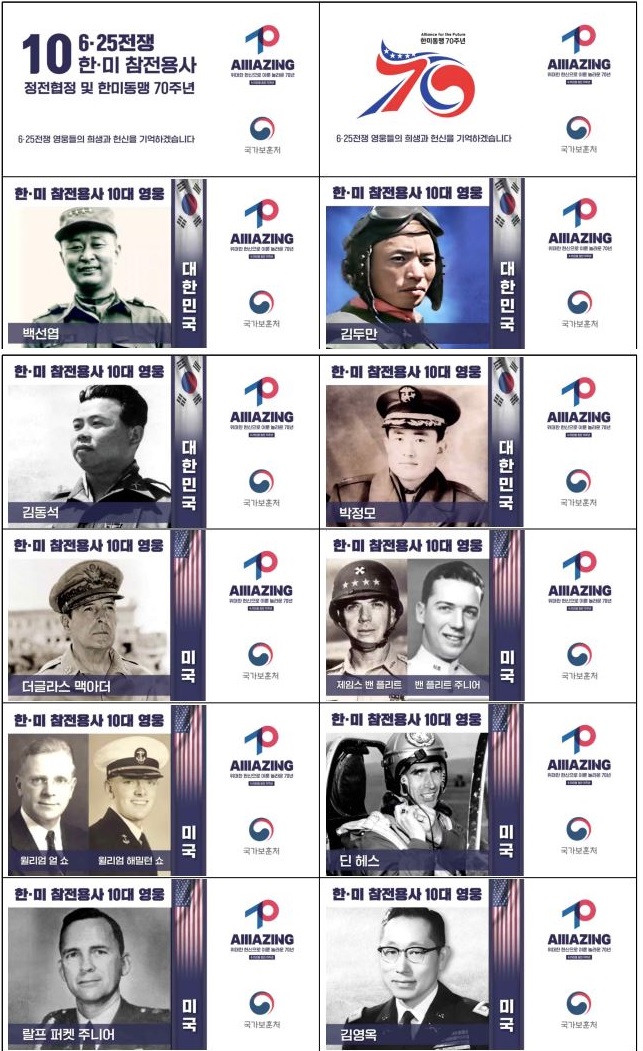 10대(大) 영웅에는 맥아더 유엔군 총사령관, 밴 플리트 부자, 윌리엄 쇼 부자, 딘 헤스 공군 대령, 랄프 퍼켓 주니어 육군 대령, 김영옥 미국 육군 대령, 백선엽 육군 대장, 김두만 공군 대장, 김동석 육군 대령, 박정모 해병대 대령이 이름을 올렸다. 헌정 영상에는 “오늘날 대한민국의 자유와 번영은 자랑스러운 6· 25전쟁 참전 영웅들의 희생과 헌신으로 이룩되었다”며 “한국전 영웅들의 희생과 헌신을 영원히 기억하겠다”는 메시지가 담겼다.