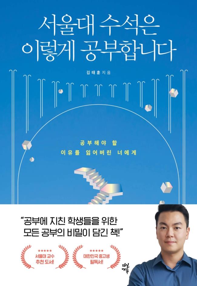2016년 인기를 끌었던 공부 비법 책 《서울대 수석은 이렇게 공부합니다》(김태훈, 다산에듀, 2021)가 개정판으로 다시 나왔다. 한국에서 IT 스타트업 ‘파라스타’와 교육 사업 ‘공부자존감’을 운영 중인 저자 김태훈은 영재(英才) 고등학교로 불리는 ‘민족사관고등학교’를 수석 입학, 수석 졸업하고 서울대학교 건축학과와 동(同)대학원 석사과정을 수석으로 졸업한 이른바 ‘공부 전문가’다. 그는 “10대 시절의 공부가 인생을 결정하는 중요한 요소라는 사실을 발견하고, 대한민국의 모든 학생이 이유를 잃어버린 공부로 스트레스 받지 않기를 바라는 마음에서 이 책을 썼다”고 말했다.