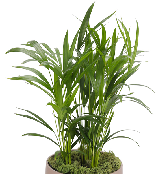 아레카야자 화분에 공기정화 효과가 우수한 부처손 등의 지피식물과 함께 심으면 아름다움을 훨씬 더 자아낼 수 있다.