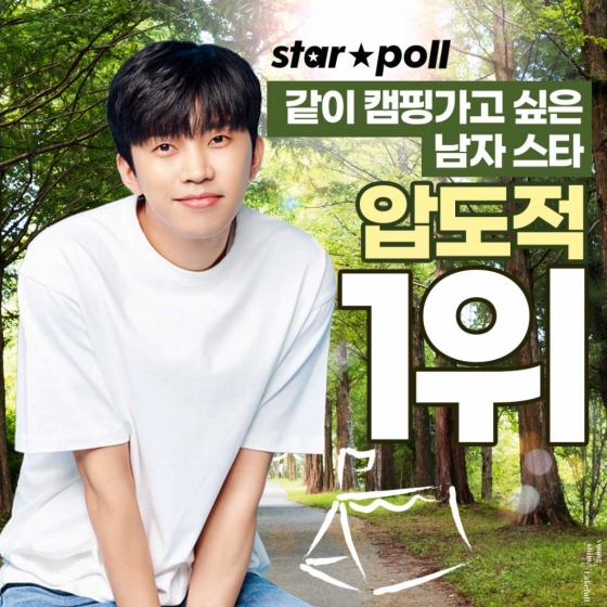 '스타폴(STARPOLL)'에서 지난달 22일부터 5일까지 진행한 '같이캠핑 가고 싶은 남자 스타는?' 설문에서 16만9938표를 얻어 89.6%의 지지율로 압도적 1위에 올랐다.