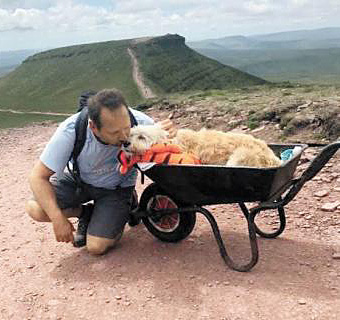 그는 상태가 악화해 걷기 힘든 몬티를 수레에 태우고 해발 886m 산 정상을 향해 묵묵히 걸었다. 수레가 가기 어려운 곳에선 몬티를 직접 업고 산을 올랐다. 몬티는 그런 주인의 마음을 안다는 듯 조용히 경치를 감상했다. 이별 여행을 끝으로 몬티는 지난달 21일(현지 시각) 무지개 다리를 건넜다.
