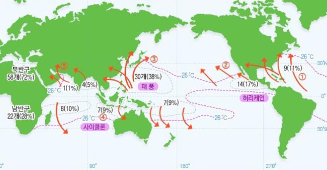 세계기상기구(WMO)에 따르면 최대 풍속이 33㎧ 이상인 것을 태풍(Typhoon)이라 한다. 영문 명칭은 그리스 신화에 등장하는 괴물 ‘티폰(Typhon)’에서 유래됐다. 적도 부근에서 발생한 태풍은 바다에서 발생한 수증기를 공급받으며 세력을 키워 북반구 쪽으로 이동한다.