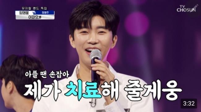 가수 임영웅이 '사랑의 콜센타'에서 선보인 '아파요' 무대 영상이 네이버TV TOP100 1위를 차지했다.