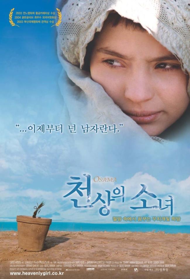 '천상의 소녀'는 미국-아프가니스탄 전쟁으로 탈레반 정권이 붕괴된 후 2003년 첫 제작됐던 아프가니스탄 영화이다. 영화 제작이 금지된 탈레반 정권에서 벗어나 파키스탄으로 망명했던 세디그 바르막(Siddiq Barmak) 감독은 탈레반 정권이 무너지자 고국으로 돌아왔다. 그때 신문에서 13살 소녀가 학교에 가고 싶어 남자로 변장했다가 발각됐다는 기사를 읽고 이 영화를 착안했다.