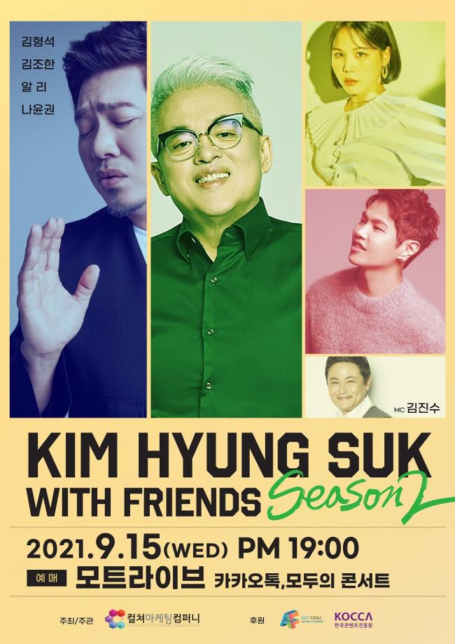 '김형석 with FRIENDS'가 오는 15일 저녁 7시 서울 성동구 '이마트 뮤직스튜디오'에서 '김형석 with FRIENDS 시즌 2'로 돌아와 온라인 콘서트를 연다.