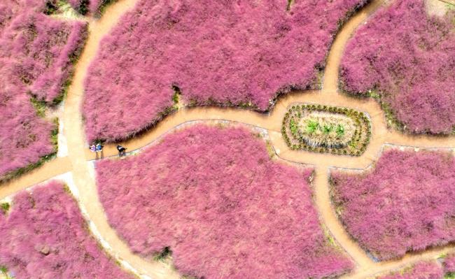 지난 19일 오후 전남 나주시 반남면 국립나주박물관 인근 공원에 분홍 핑크뮬리가 활짝 피어 나들이객들의 눈길을 끌었다.