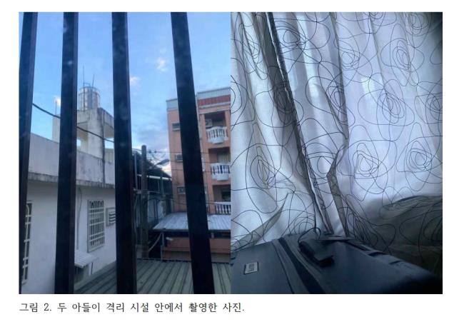 두 아이는 제주도보다 조금 아래쪽에 있는 대만에 2시간 35분의 비행 끝에 당일 오후 도착해 곧바로 강제 시설 격리에 들어갔다. 실명을 공개할 수는 없지만 호텔은 한국의 평범한 모텔과도 비교하기 힘든 열악한 숙소로 보였다. 창살이 있는 밖으로 옆 건물들의 옥상이 보이는 전망은 갇힌 자의 마음을 더욱 옥죄는 듯한 느낌까지 들었다. 또 밖으로 나갈 수 없기 때문에 ‘밖’을 가린 커튼 너머로 한낮의 푸른빛은 스산한 기운마저 감돌았다.